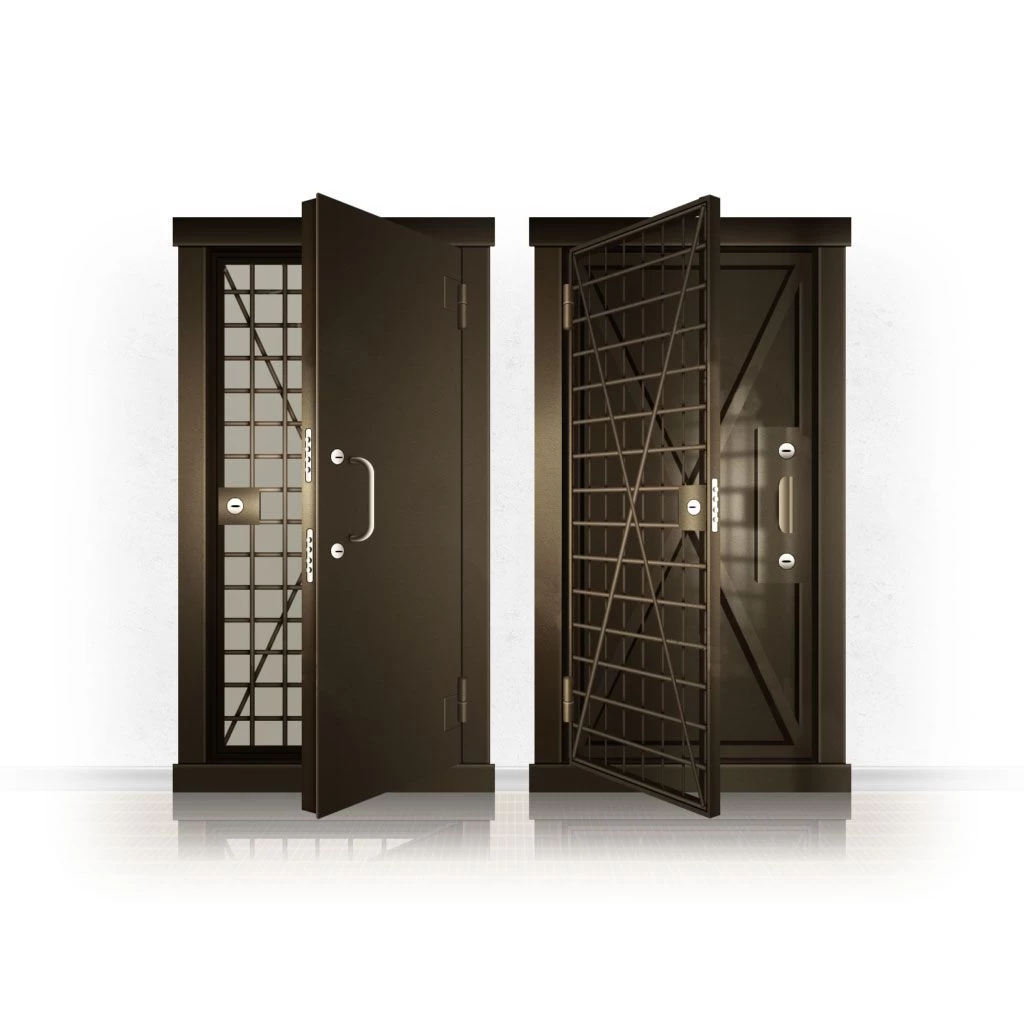 Металлические двери КХО и КХН представляют собой входные блоки, обладающие высоким уровнем взломостойкости и состоят из трех основных элементов: усиленного каркаса, сплошного металлического полотна и решетчатой двери. Дверной блок изготавливается из стального уголка 100*100 мм. Места крепления блока к стене цементируются и закрываются стальными наличниками шириной 40 мм. Крепеж заходит вглубь стены на 80 мм. В конструкции внешней створки монтируются ребра жесткости, для обшивки используется сталь толщиной не менее 3 мм. Внутренняя решетка изготавливается из прутка диаметром 16 мм. Размер ячеек решетки должен составлять не более 15 на 15 см. В точках пересечения прутья надежно приваривают друг к другу. В КХО и КХН необходимо поддерживать определенную температуру и влажность. Для этого внутреннее пространство глухой двери заполняется теплоизоляционным материалом, а по периметру двери приклеивается уплотнитель. Такие двери оборудуются замками с повышенным уровнем взломостойкости. Специализированные двери КХО и КХН в Лахденпохье могут быть оснащены сигнализацией, в конструкции могут быть проушины для навесного замка и элементами для опечатывания. Если идет речь о двери в комнату хранения оружия, в створке оборудуется окно для выдачи оружия и спец. средств, которое накрывается стальной дверцей.