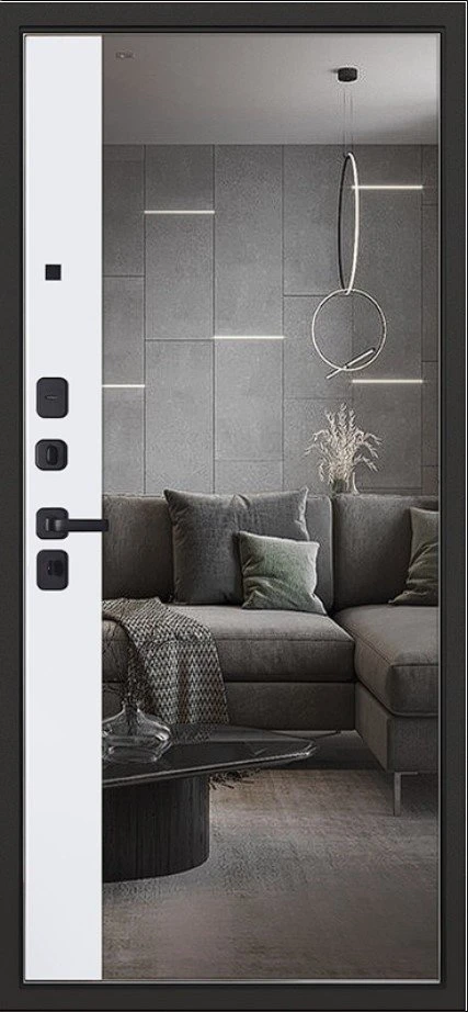 Надежная входная Дверь Scandi с зеркалом премиум класса по цене 45 035 руб. Большая толщина стали защитит от проникновения в ваш дом, квартиру или коттедж. Используется очень качественная фурнитура: замки, цилиндры, ручки, защелки. Покрытие и отделка двери изготовлено под внимательным контролем производителя. Дверь имеет долгий срок службы и гарантию.